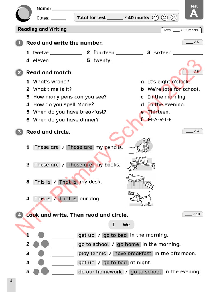 Class: Total for test / 40 marks A