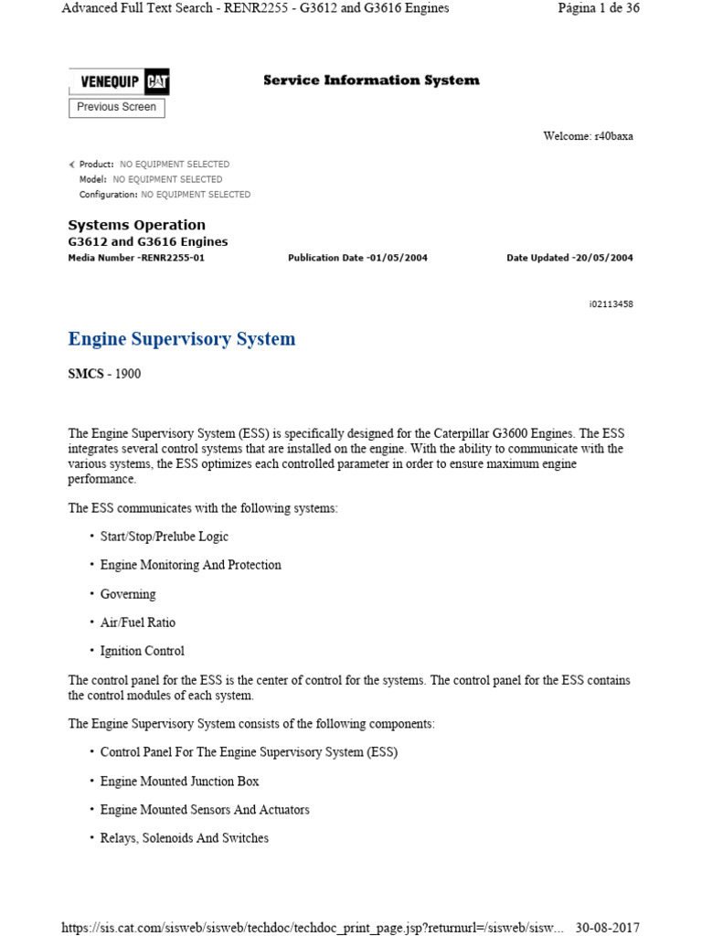 The Engine Supervisory System (ESS) is specifically designed for the Caterpillar G3600 Engines. The ESS