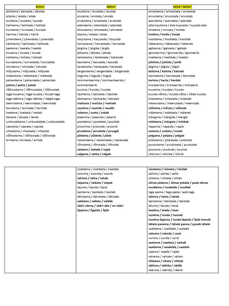huvitama / huvitada / huvitab ehmatama / ehmatada / ehmatab hindama / hinnata / hindab