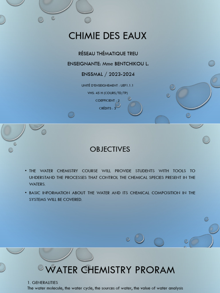 CHIMIE DES EAUX