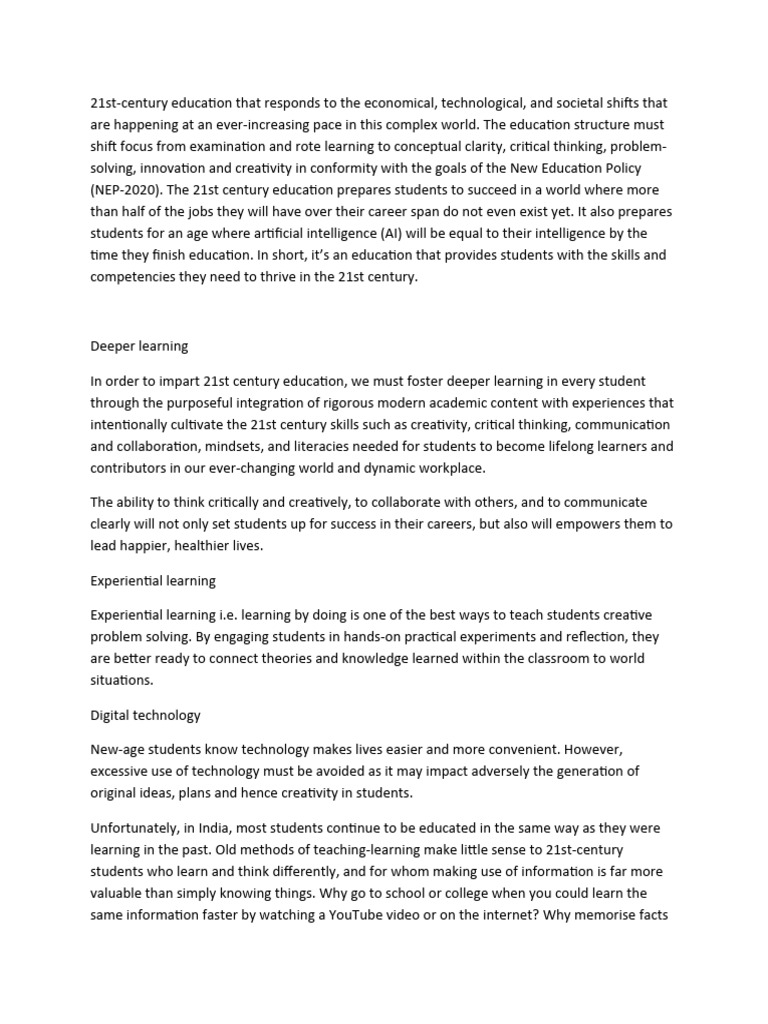 (NEP-2020). The 21st century education prepares students to succeed in a world where more