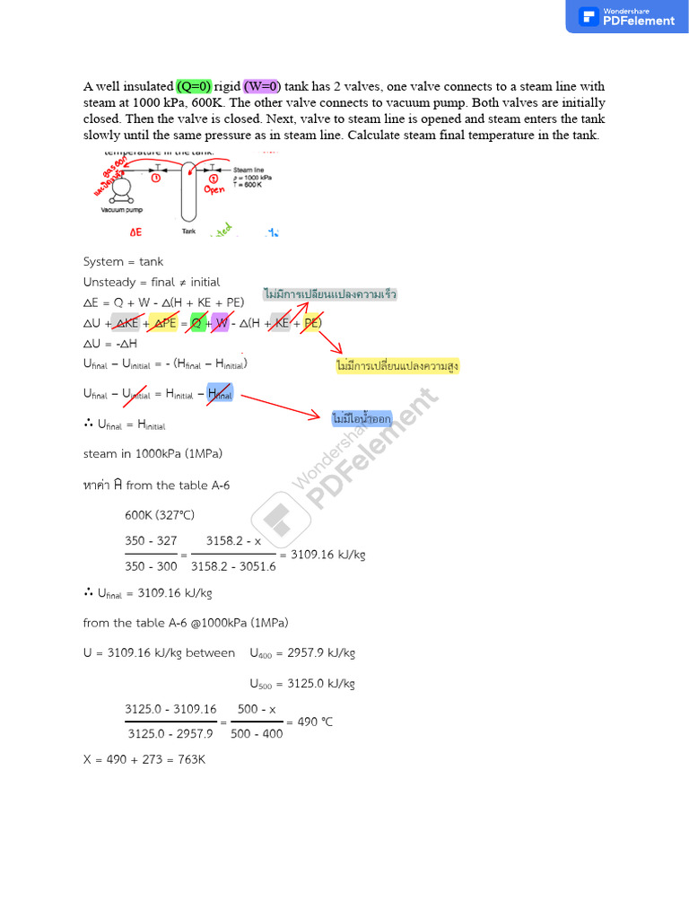 ∴ Ufinal = Hinitial ไม่มีไอน้ำออก
