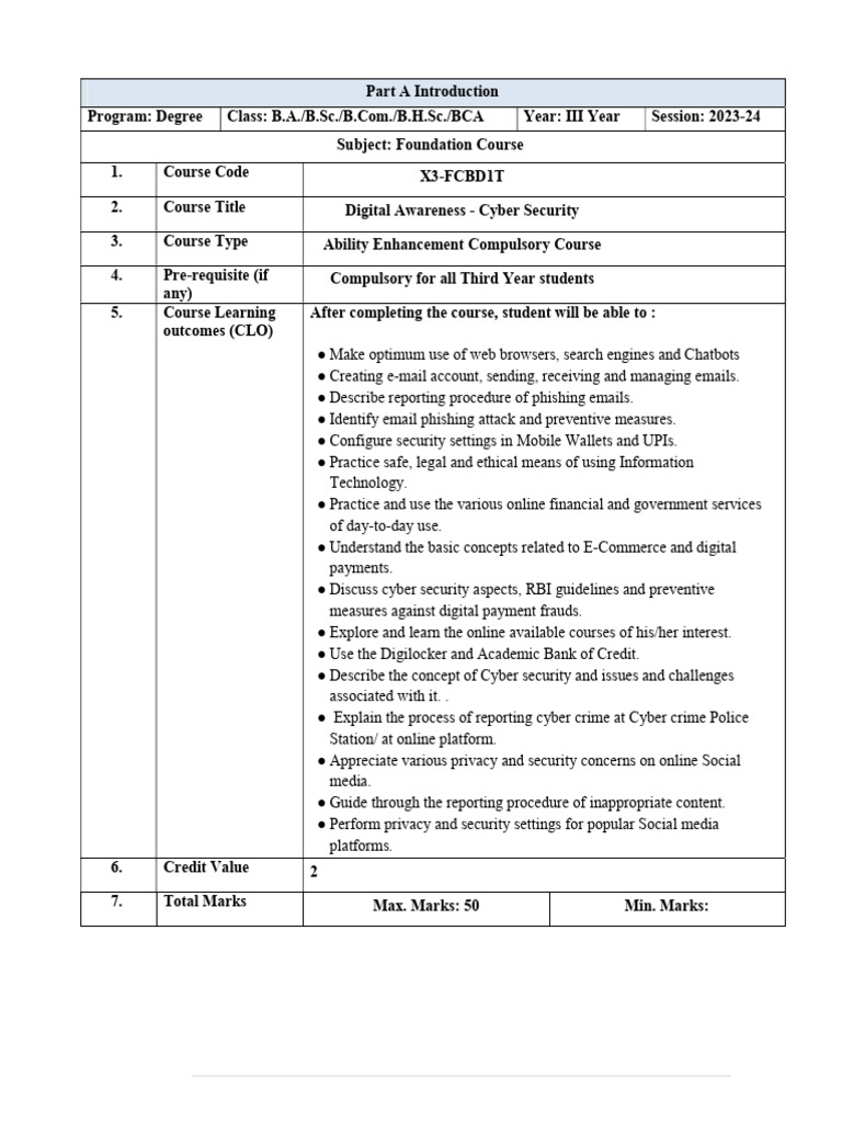 2. Course Title Digital Awareness - Cyber Security