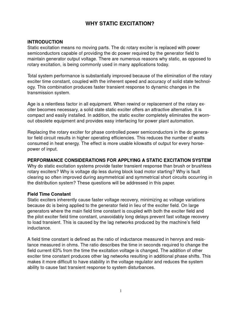 Today, static excitation has proven itself to be reliable in literally billions of operating hours.