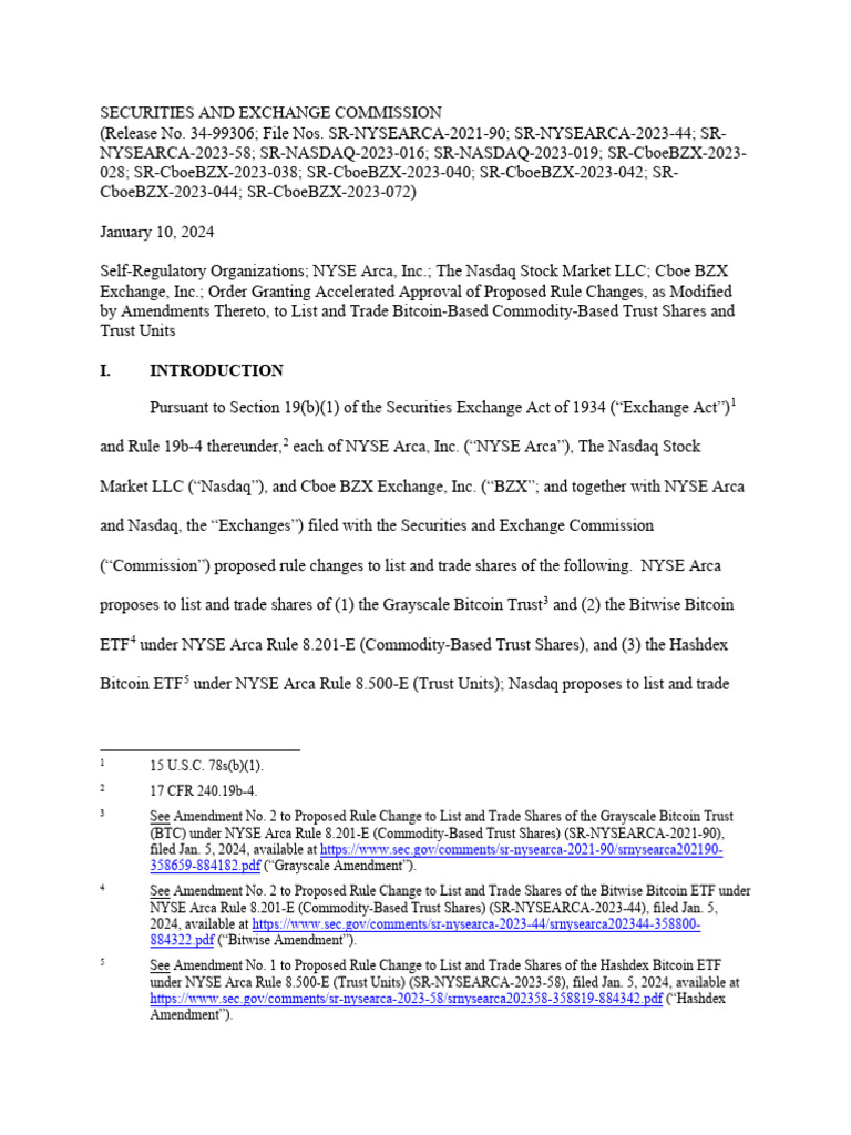 NASDAQ-2023-019, SR-CboeBZX-2023-040, SR-CboeBZX-2023-042, SR-CboeBZX-2023-044, and SR-