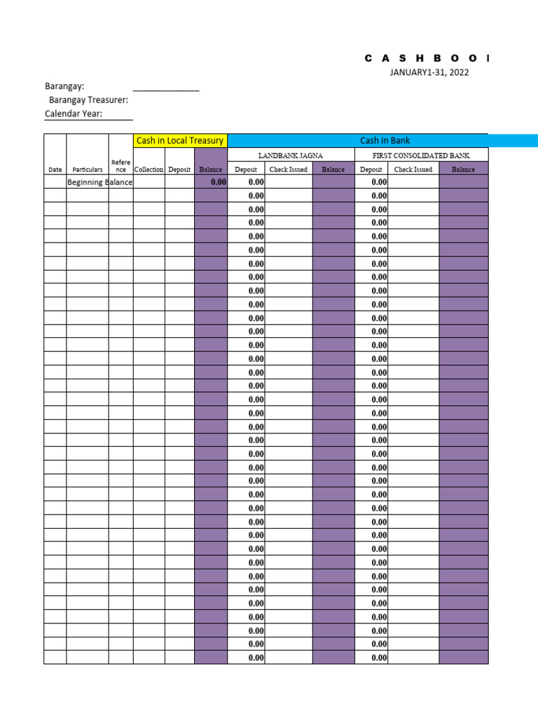deposit/remittances and balances of my accounts in Cash - in Local Treasury, Cash in Bank,