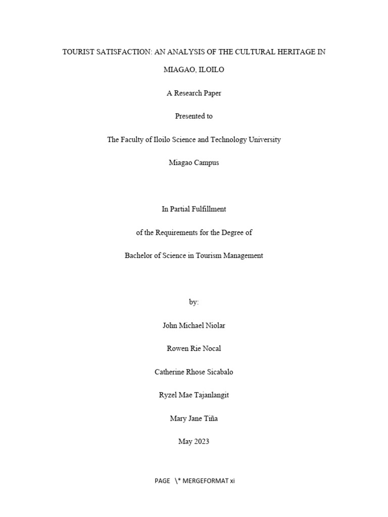 This research entitled “Tourist Satisfaction: An Analysis of Cultural Heritage in Miagao,