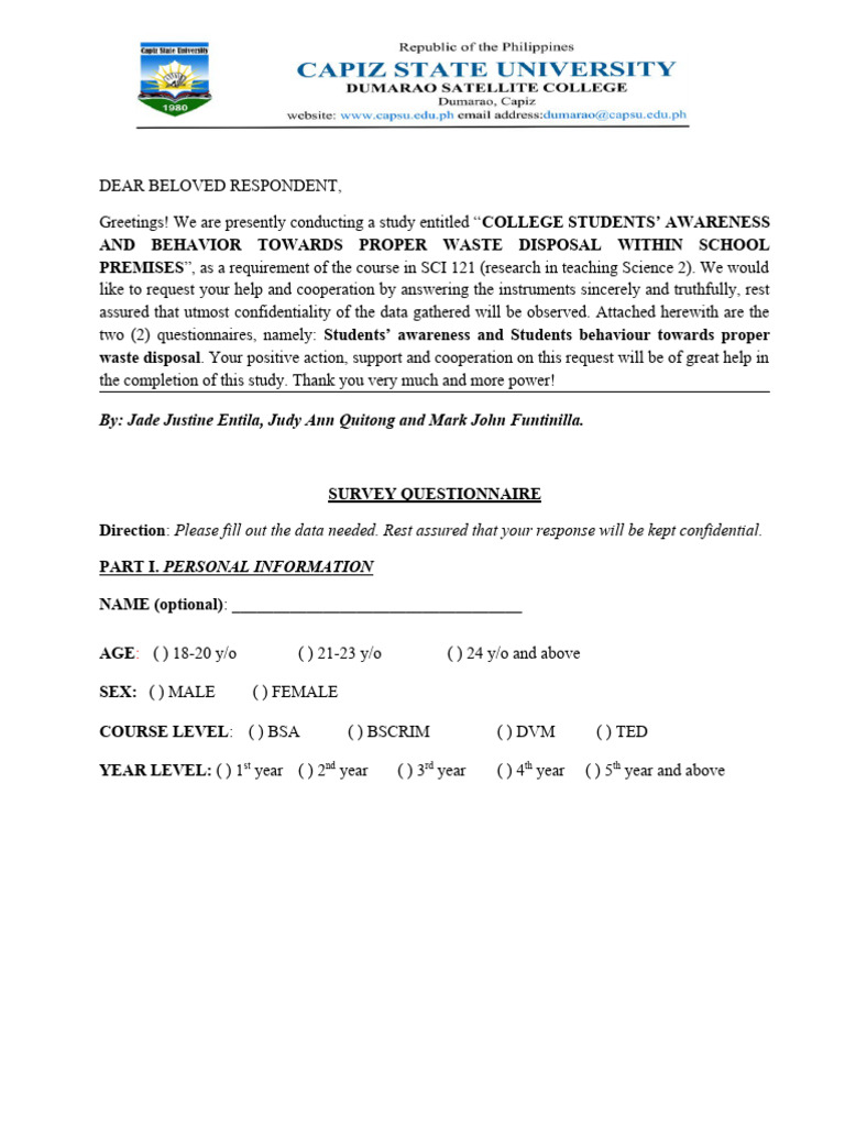 Greetings! We are presently conducting a study entitled “COLLEGE STUDENTS’ AWARENESS