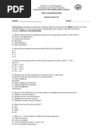 FIRST QUARTERLY TEST IN MATHEMATICS 8
