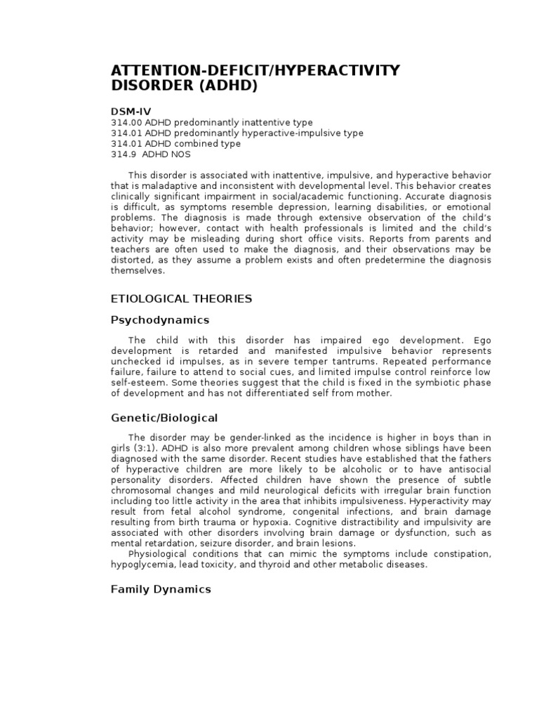 girls (3:1). ADHD is also more prevalent among children whose siblings have been