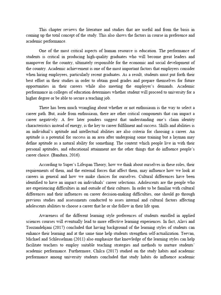 academic performance. Furthermore, Chilca (2017) studied on the study habits and academic