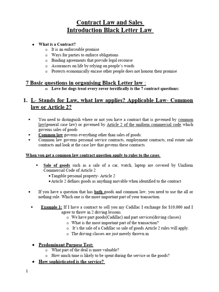 1. Contract law is permitting almost every aspect of our lives, try to connect rules to real life