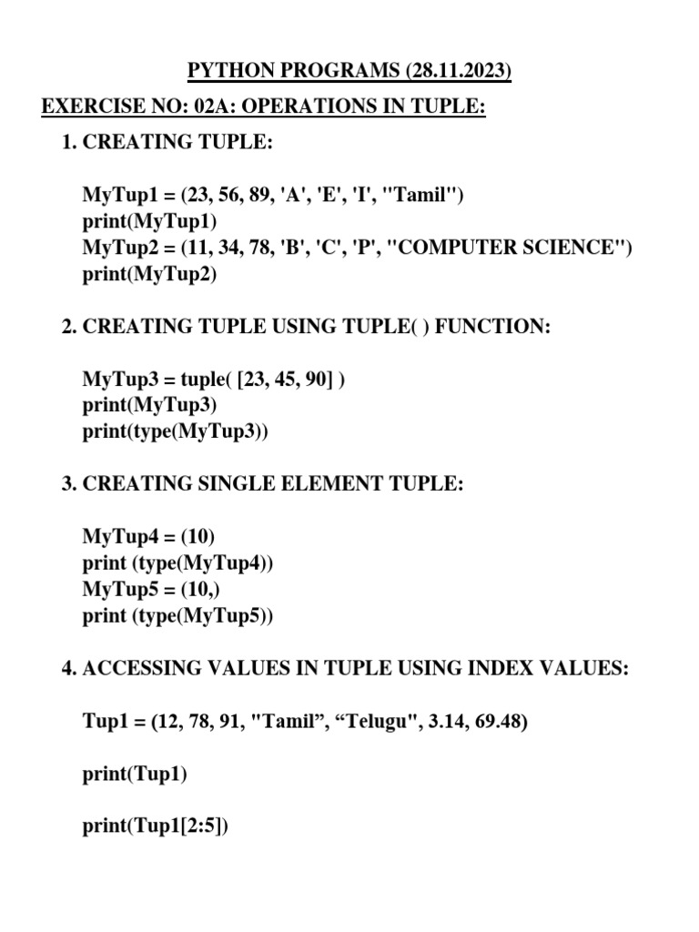 EXERCISE NO: 02A: OPERATIONS IN TUPLE:
