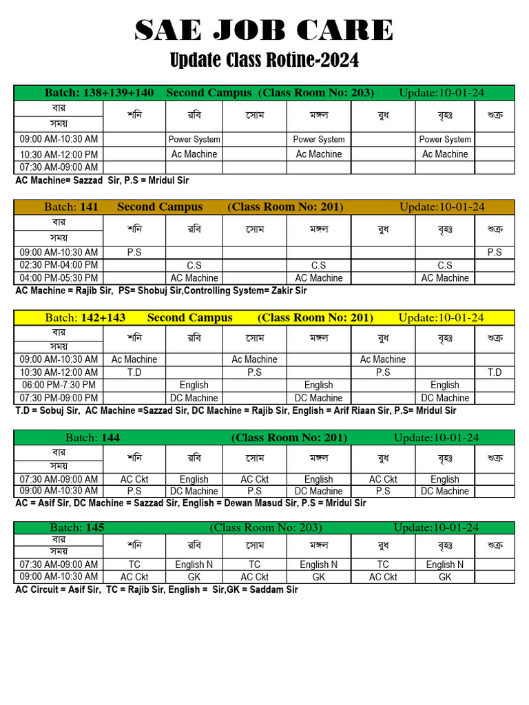 AC Circuit = Asif Sir, TC = Rajib Sir, English = Sir,GK = Saddam Sir