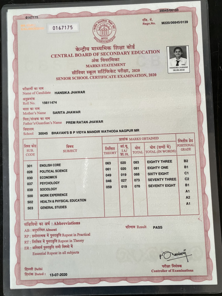 Father's/Guardian’s Name PREM RATAN JHAWAR