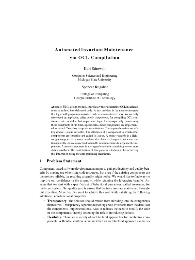 tenance Wrappers from OCL Constraints.” Technical Report GIT-CC-03-46, College of