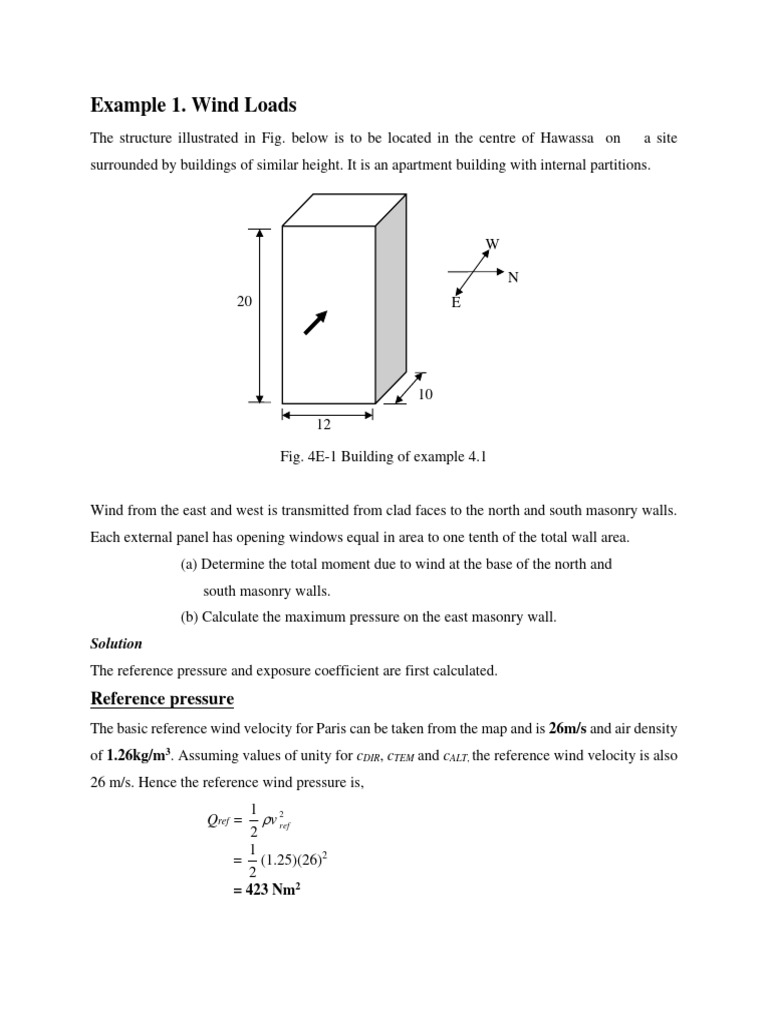 of 1.26kg/m3. Assuming values of unity for cDIR, cTEM and cALT, the reference wind velocity is also