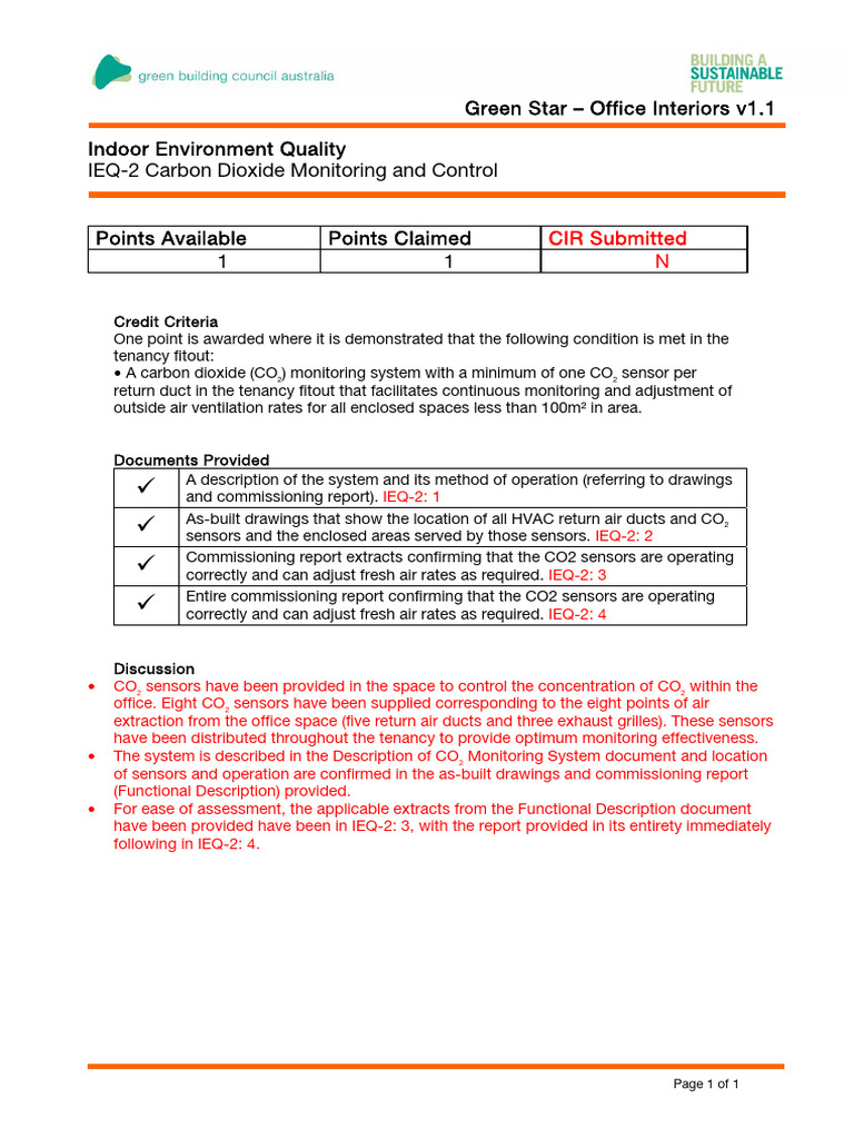 The CO2 monitoring system employed within the GBCA tenancy on Level 15, 179 Elizabeth St, Sydney uses CO2