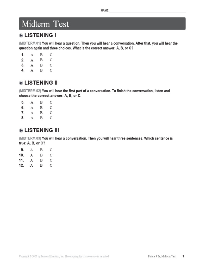 Copyright © 2020 by Pearson Education, Inc. Photocopying for classroom use is permitted. Future 3 2e, Midterm Test 1