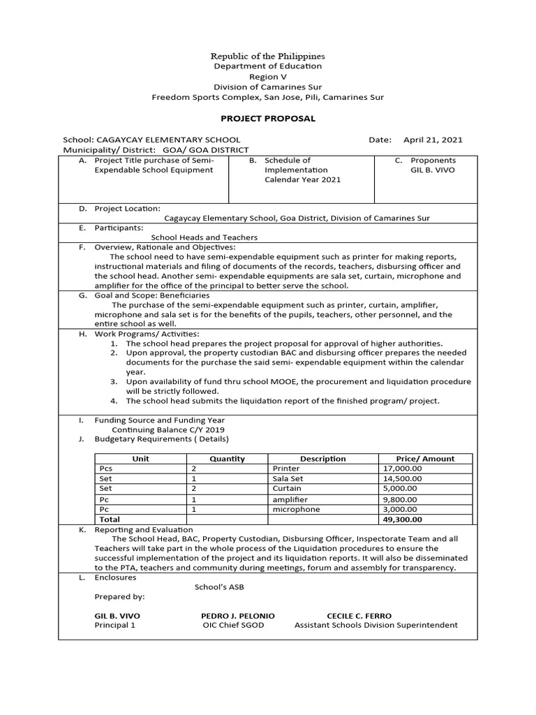 3. Upon availability of fund thru school MOOE, the procurement and liquidation procedure