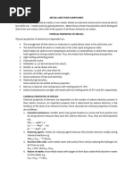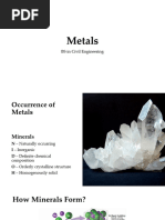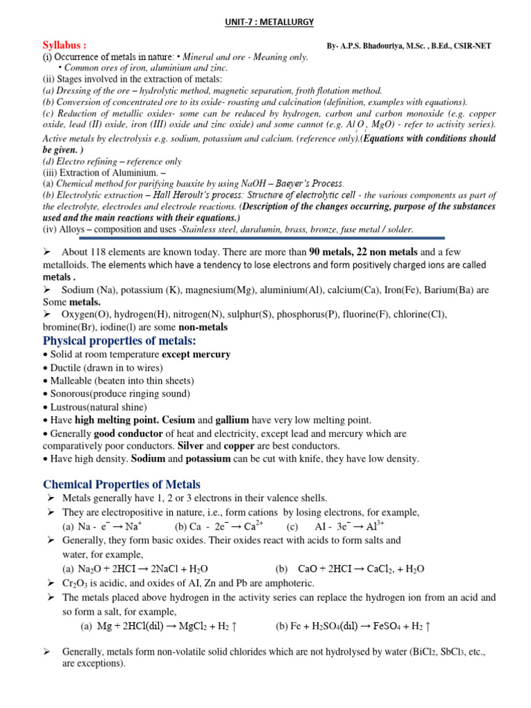 (i) Occurrence of metals in nature: • Mineral and ore - Meaning only.