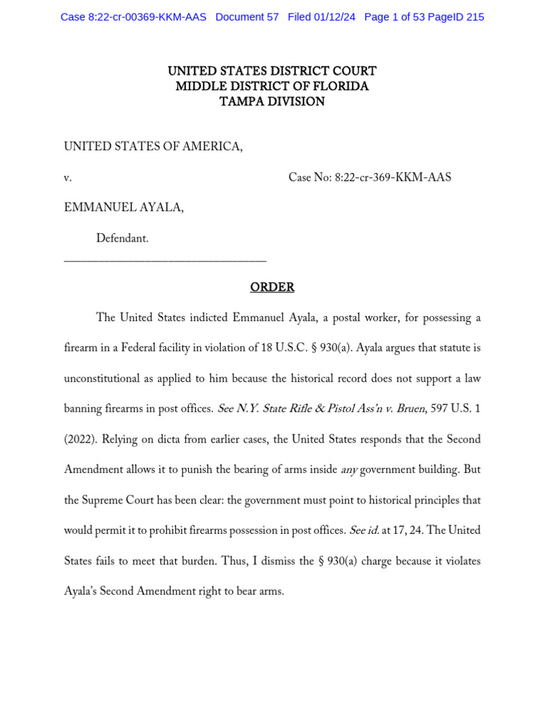 facts are that Ayala carried a firearm into an ordinary post office, which neither party