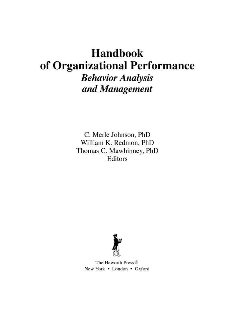 Handbook of organizational performance : behavior analysis and management / C. Merle John-