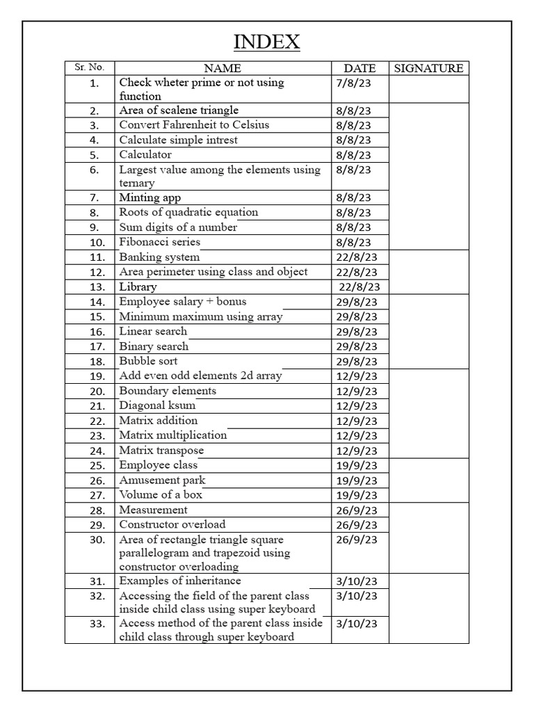 Sr. No. NAME DATE SIGNATURE