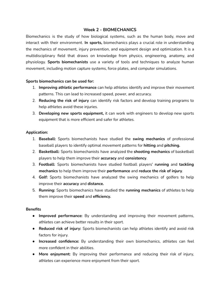 interact with their environment. In sports, biomechanics plays a crucial role in understanding