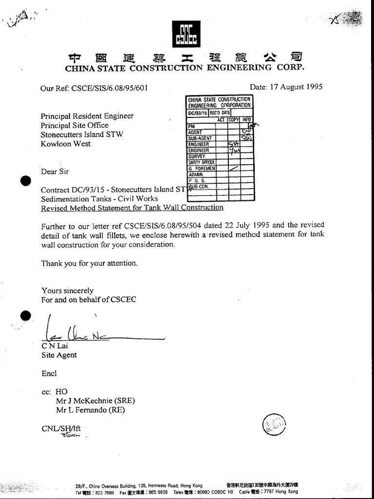 Further to our letter ref CSCE/SIS/6.08/95/504 dated 22 July 1995 and the revised