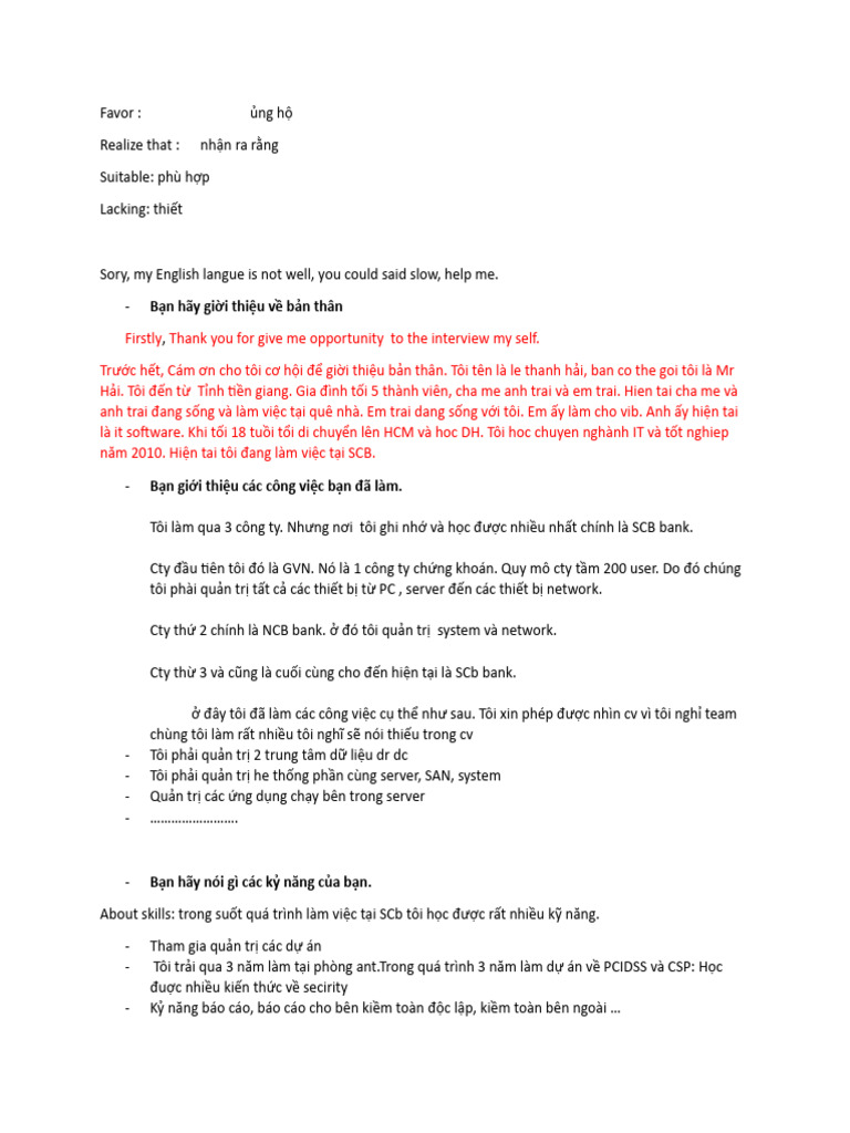 Trước hết, Cám ơn cho tôi cơ hội để giời thiệu bản thân. Tôi tên là le thanh hải, ban co the goi tôi là Mr