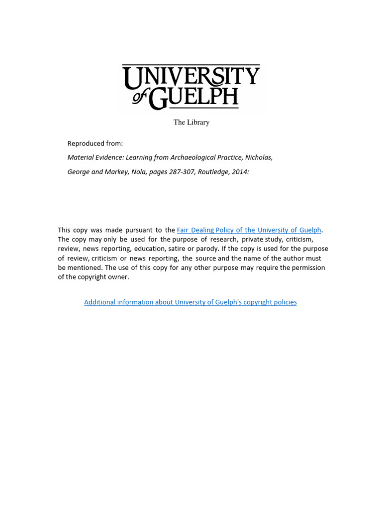 Nicholas, G. P. and Wylie, A. (2012) ‘“Do noc do unto others . . cultural misrecognition