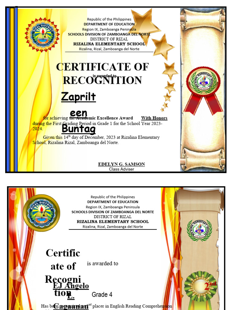 Has been recognized as 2nd placer in English Reading Comprehension