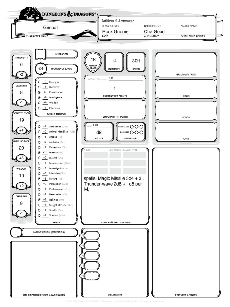 10 ● +8 Nature (Int) spells: Magic Missile 3d4 + 3 ,
