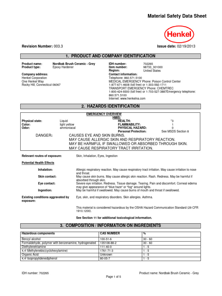 Henkel Corporation Telephone: 860.571.5100