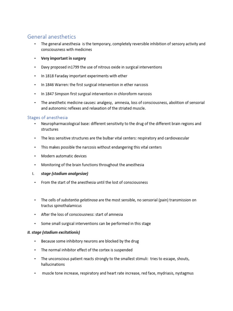 • The anesthetic medicine causes: analgesy, amnesia, loss of consciousness, abolition of sensorial