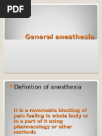 • The general anesthesia is the temporary, completely reversible inhibition of sensory activity and
