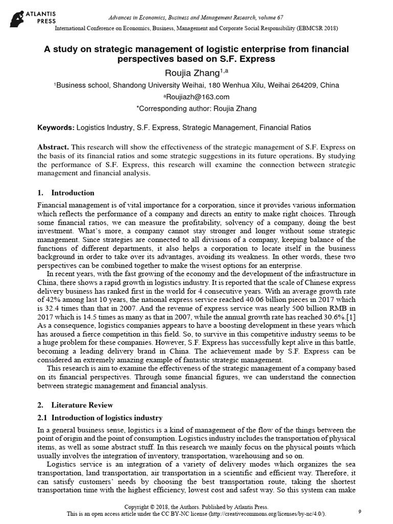 This research is developed on the basis of S.F. Express 2017 annual reports, compared with the
