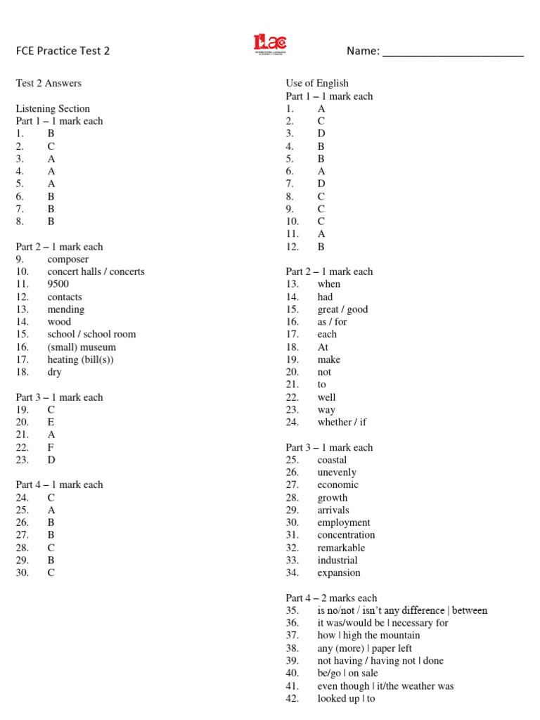 Test 2 Answers Use of English