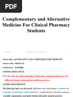 The teacher will discuss Complementary and Alternative Health Care Modalities