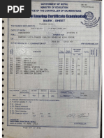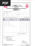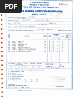 SLC Exam Mark Sheet - Nepal 2014