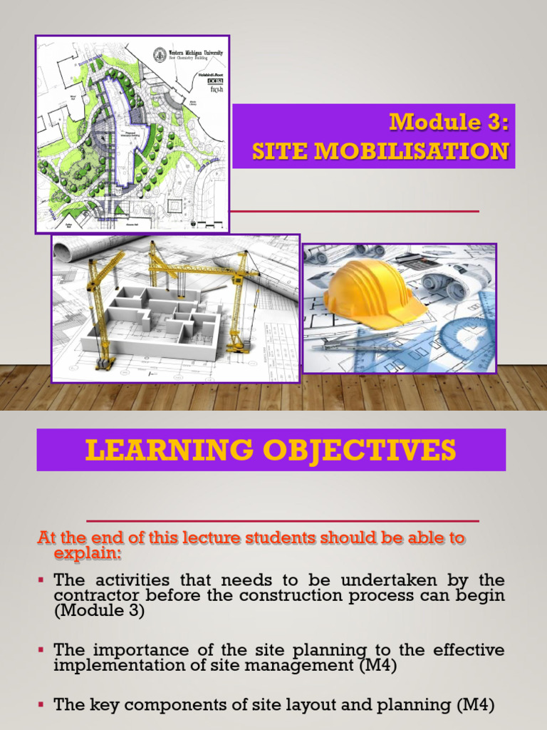 Survey existing site, Site photograph, temporary site layout, master programme, (PROJECT OBJECTIVES)