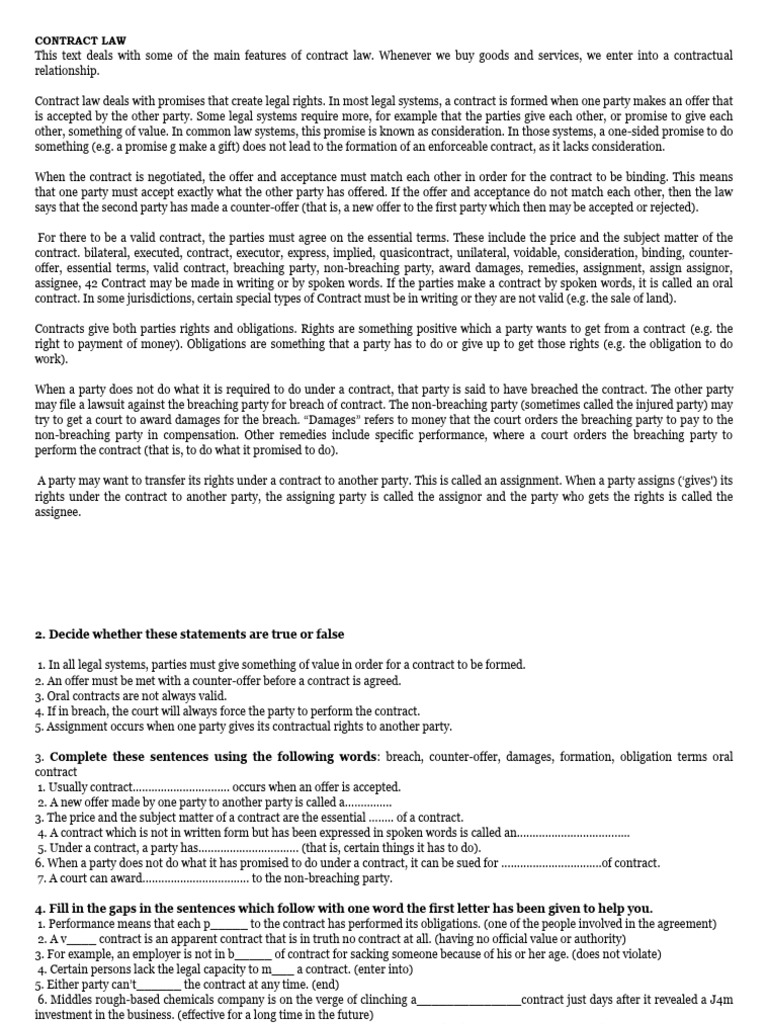 This text deals with some of the main features of contract law. Whenever we buy goods and services, we enter into a contractual