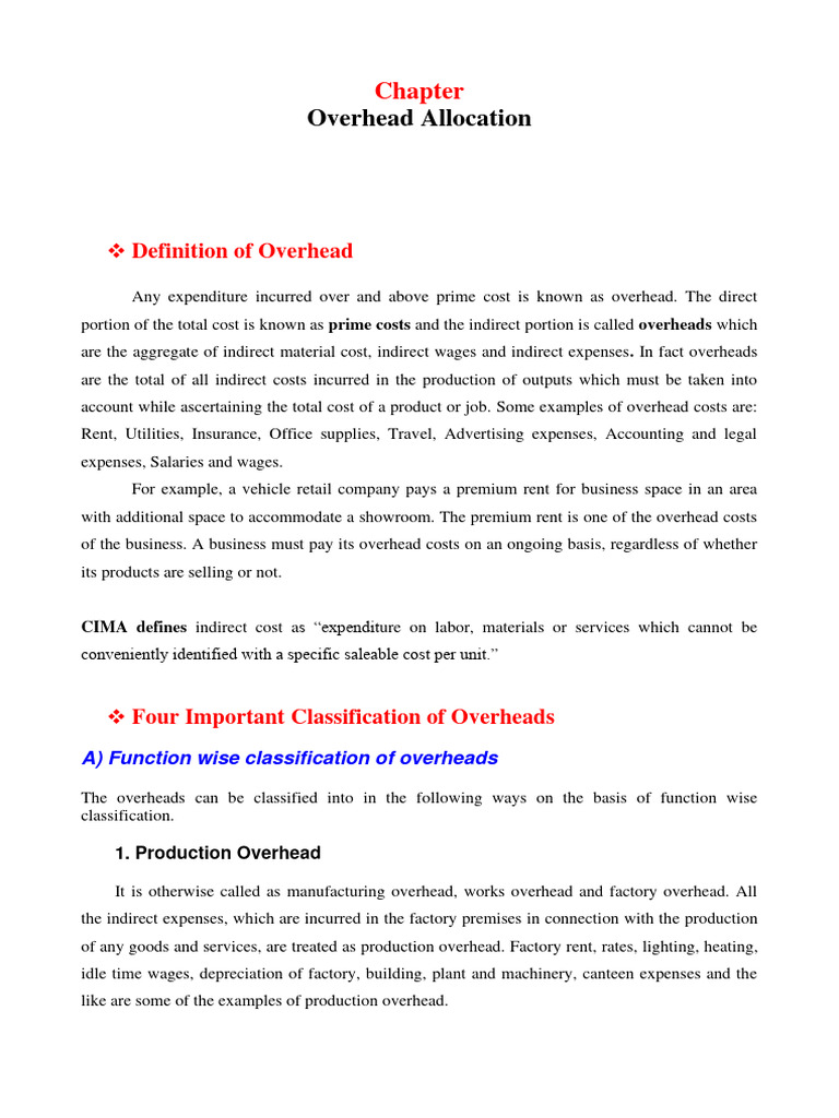 Any expenditure incurred over and above prime cost is known as overhead. The direct