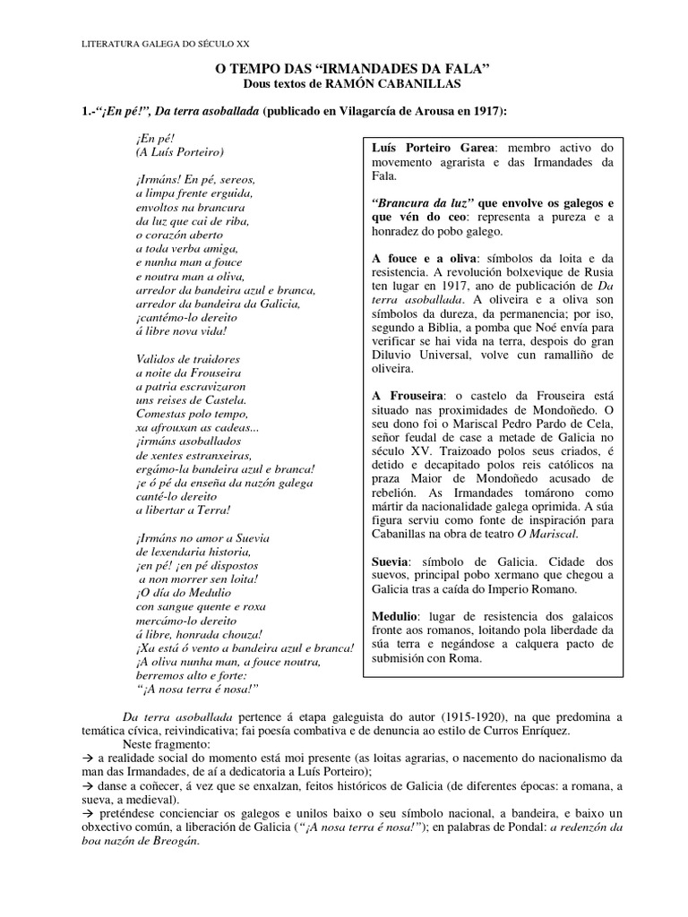 1.-“¡En pé!”, Da terra asoballada (publicado en Vilagarcía de Arousa en 1917):