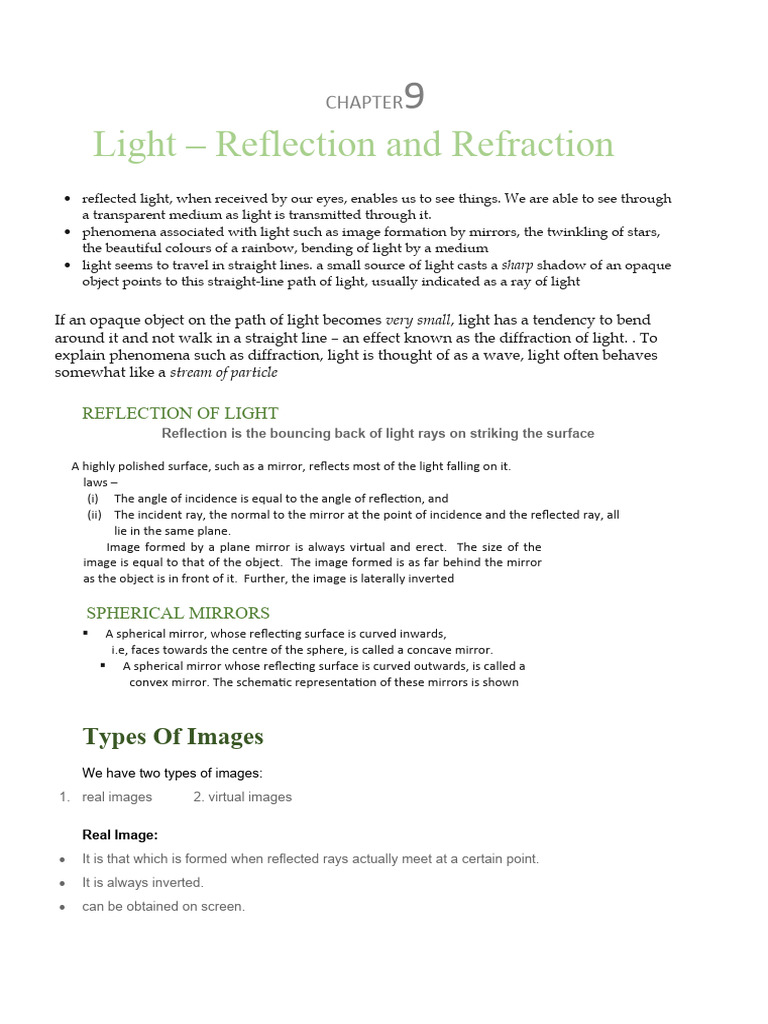 Light – Reflection and Refraction