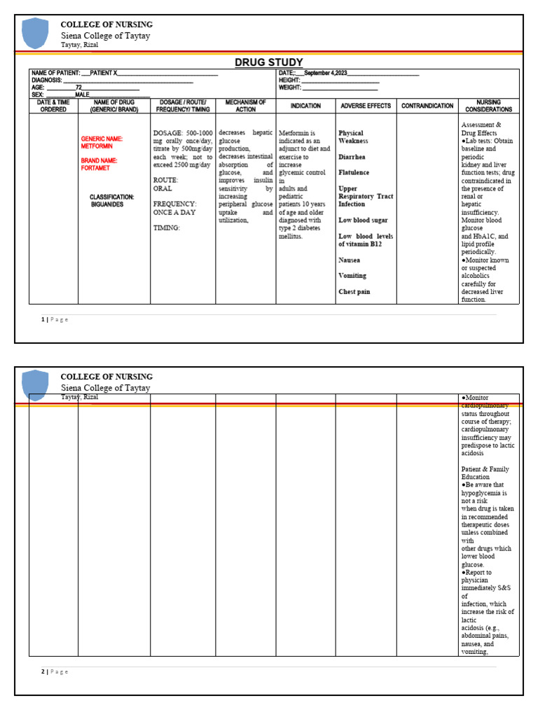 NAME OF PATIENT: ___PATIENT X___________________________________ DATE;:___September 4,2023_________________________