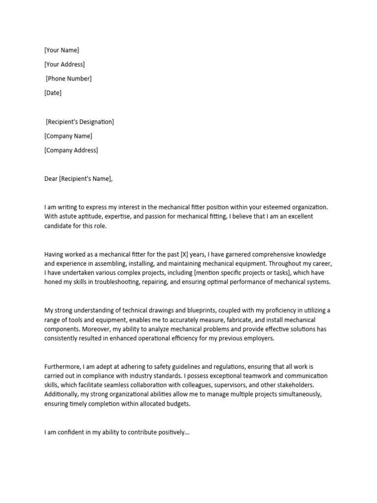 employment as a Mechanical Fitter at [Company/Organization Name]. As the [Your Title/Position] at the