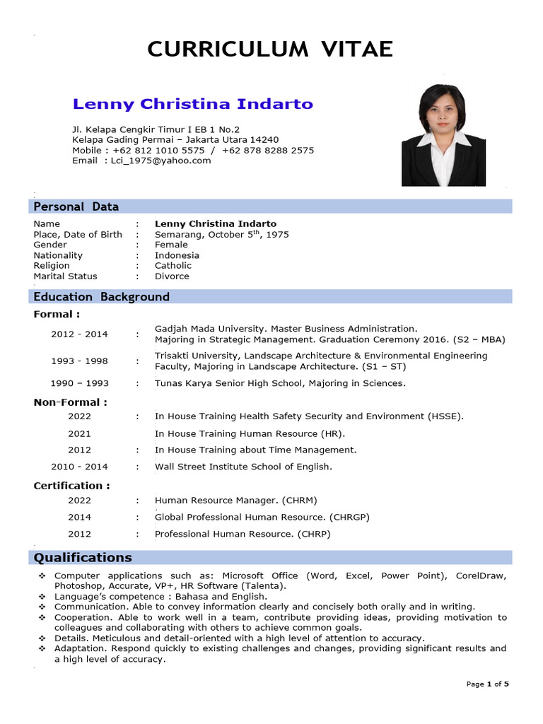 Place, Date of Birth : Semarang, October 5th, 1975