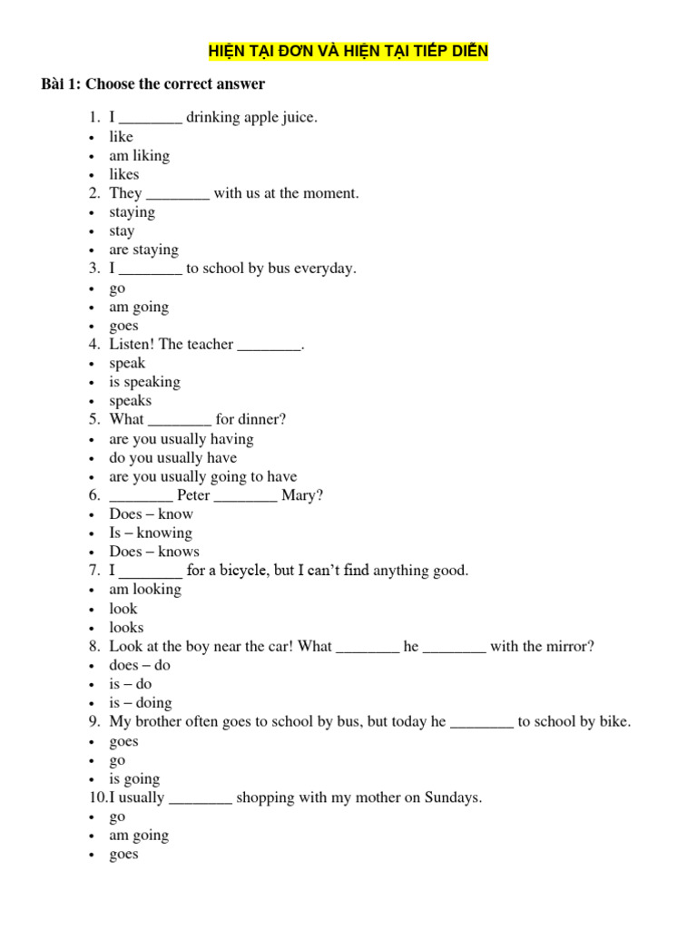 HIỆN TẠI ĐƠN VÀ HIỆN TẠI TIẾP DIỄN